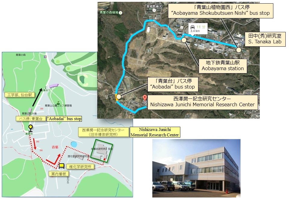 ◆ 田中(秀)研究室からは,仙台市営バス10系統に「青葉山植物園西」から乗車し,終点「青葉台」で下車。その後,徒歩約5分。バスの所要時間7分,料金150円。ただし,バスは1時間に1本の頻度です。