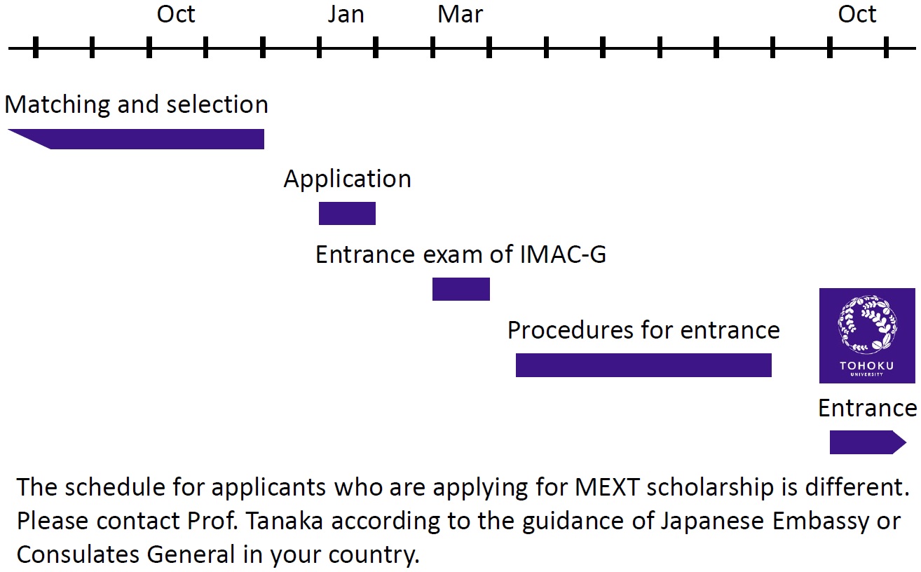 S. Tanaka Laboratory basically accepts international students via the first route (IMAC-G). For October 2022 enrollment, the application is in January 2021 and the entrance examination is in March 2021. The entrance examination is basically online.